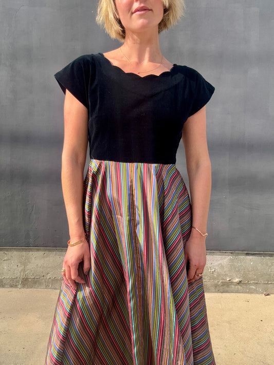 1940s Taffeta Maxi with Scalloped Velvet Bodice