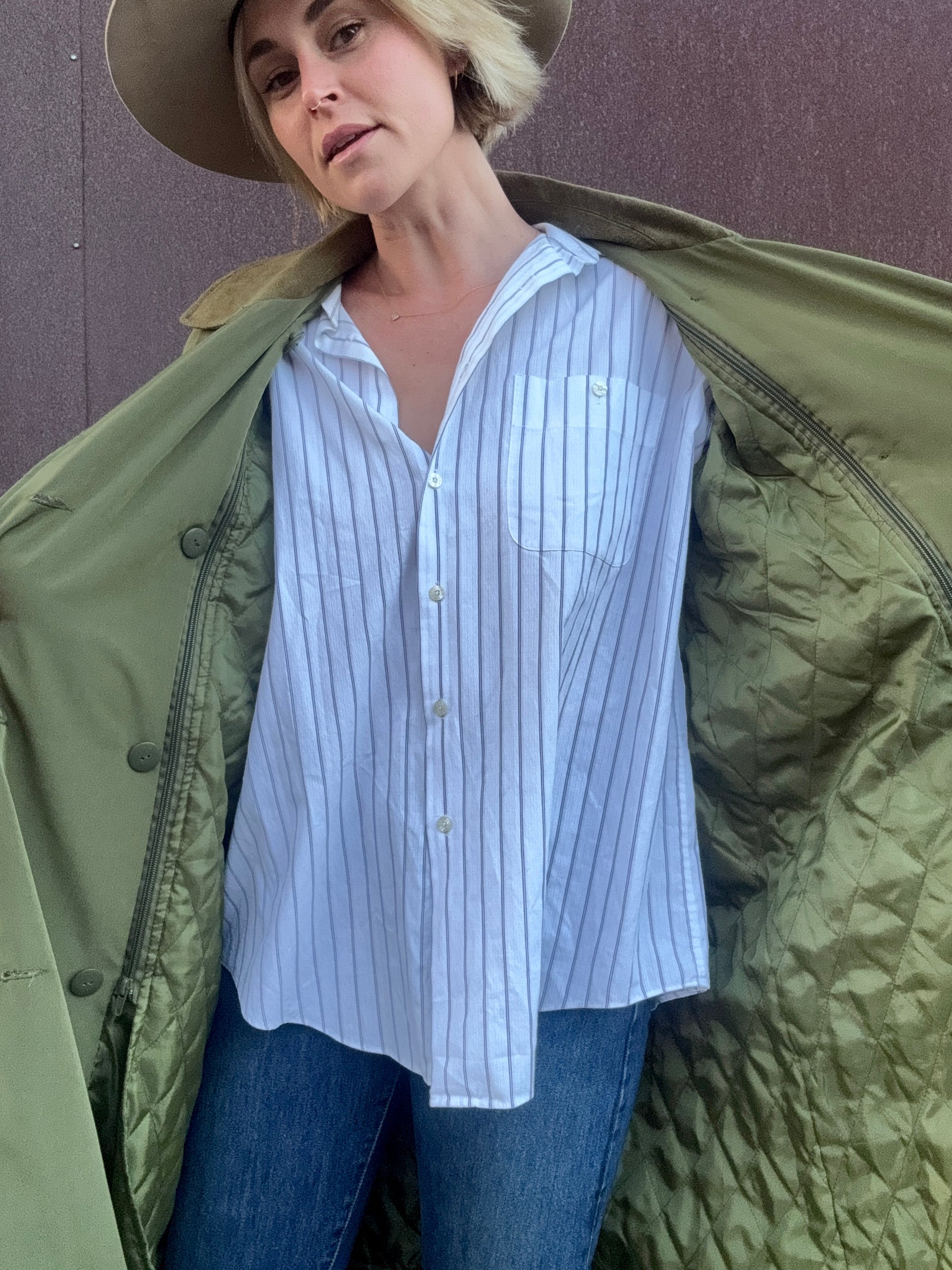 The Portia Leather Trimmed Trench is a beautifully constructed trench coat featuring a water-repellent outer and a quilted inner lining that fully zips out for adjustable warmth. Its double-breasted front fastens with interior anchor buttons, while the collar, belt, and cuff straps are trimmed in 100% genuine leather for a subtle textural contrast. Can we talk about this color though? This is one of those staple closet pieces that will never go out of style. Functional pockets and lightly built-in shoulder pads give the silhouette clean structure without feeling stiff. Style it with a midi wool skirt and tall boots, or belt it over a soft turtleneck and tailored trousers for an easy cold-weather uniform.