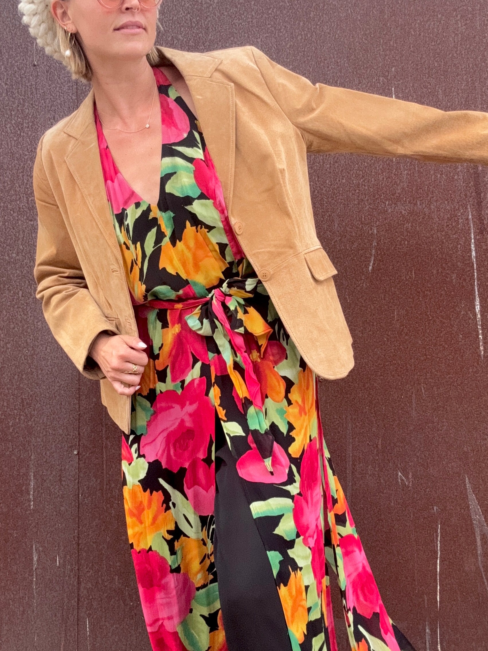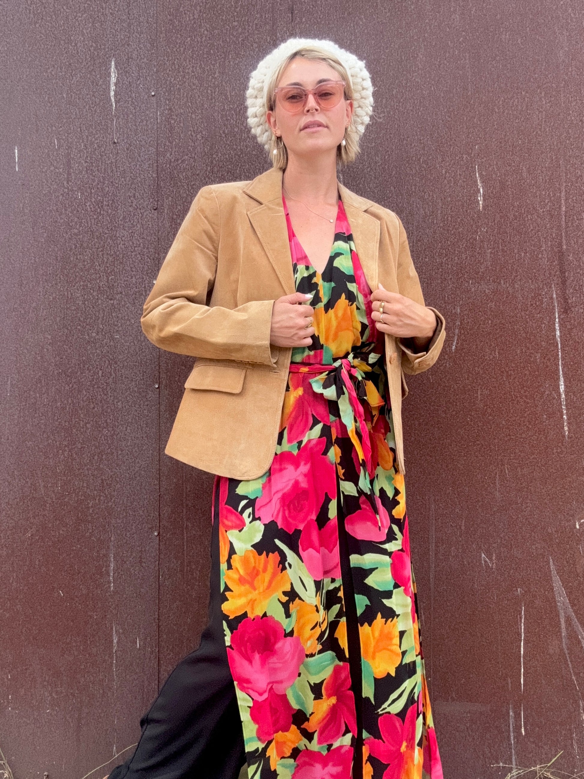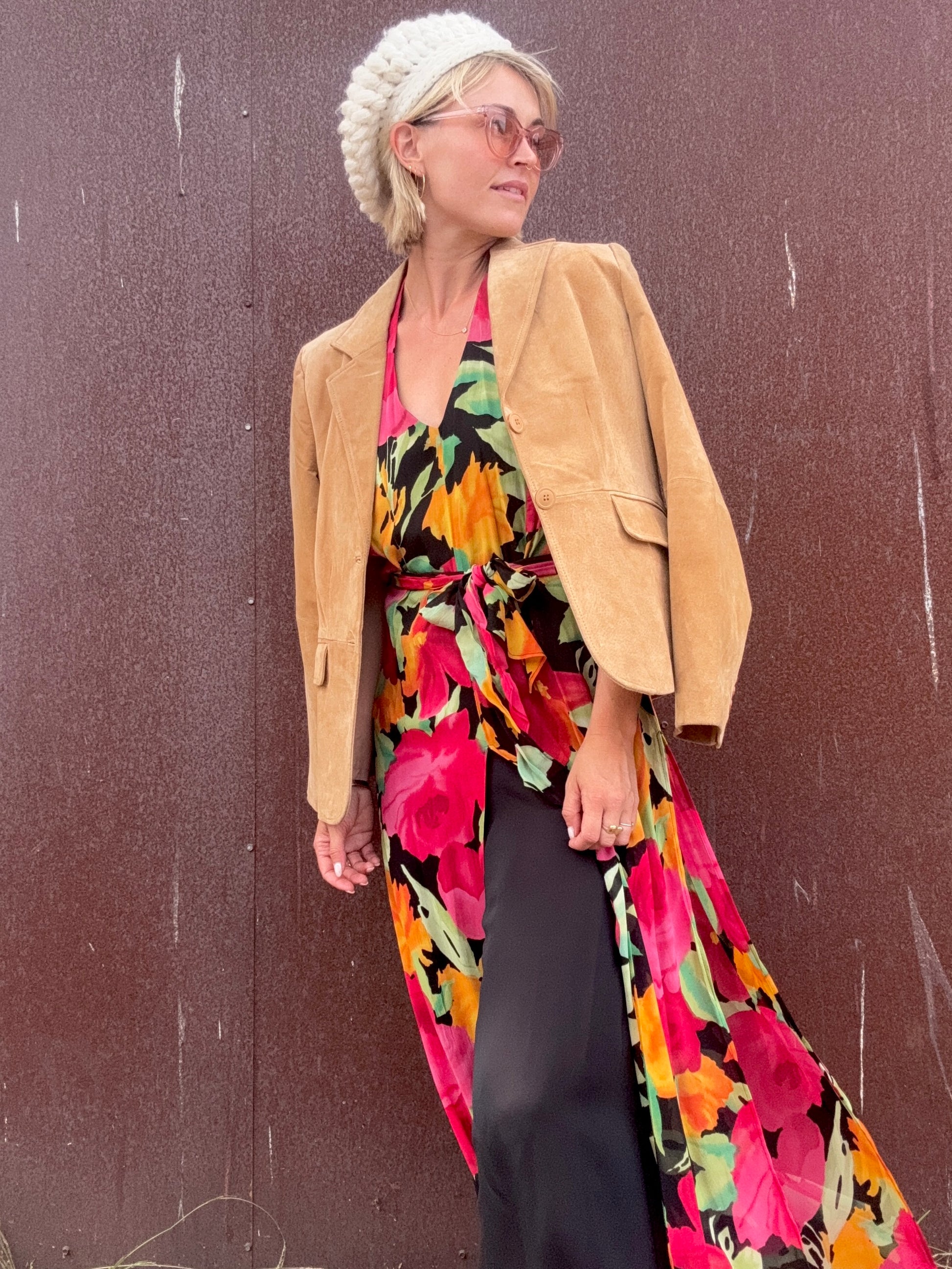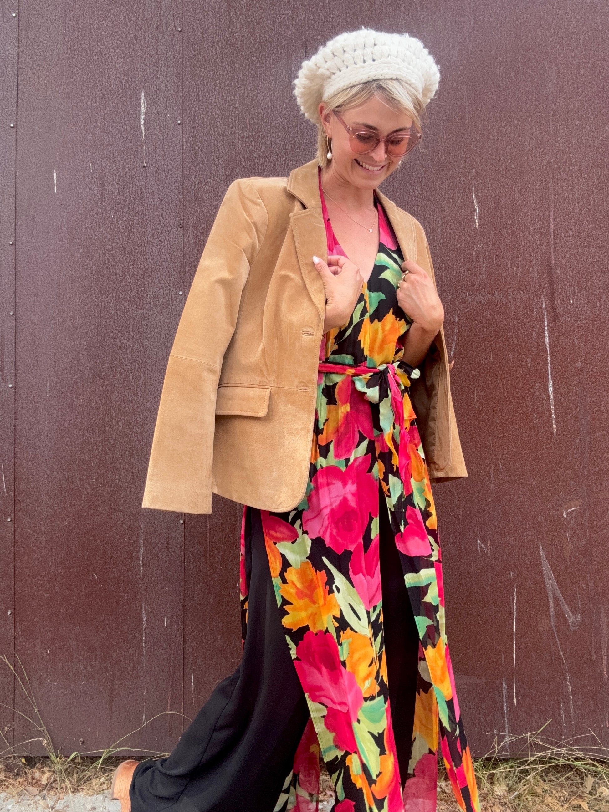 The Kyle Suede Leather Jacket is a sharp, structured piece crafted from genuine suede leather. Its tailored front seams and subtle shoulder pads give it a clean, defined silhouette, while the wooden buttons and flap pockets add practical detail. Fully lined for comfort, it closes with a two-button front and features four stacked buttons at each cuff. Pair it with wide-leg trousers and a silk blouse for a polished look, or throw it over a patterned midi dress to ground it with soft structure.