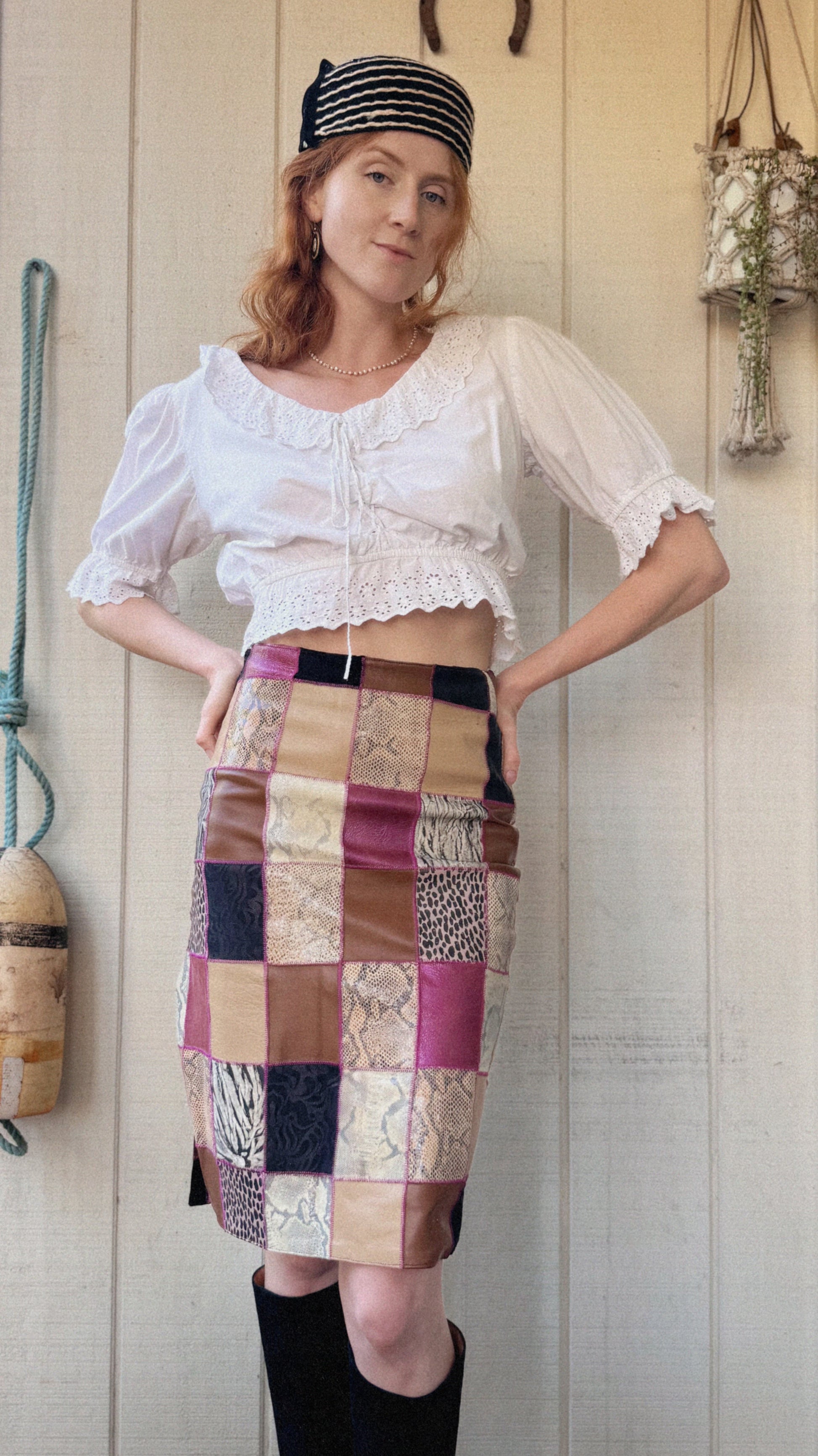 The Portia 1990s Leather Patchwork Skirt